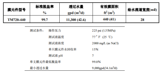 東麗TM720-440 8寸反滲透膜參數(shù)表