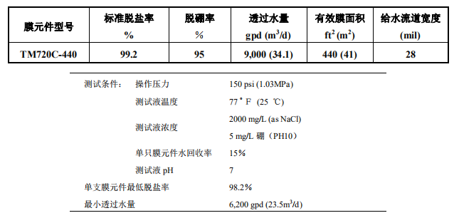 TORAY東麗TM720C-440高脫硼苦咸水RO膜性能特點