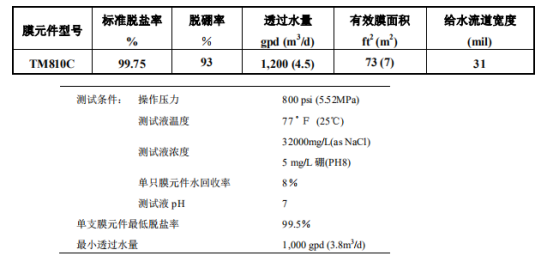 東麗TM810C海水淡化膜元件特點(diǎn):