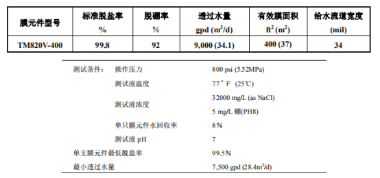東麗TM820V-400海水淡化膜元件,有效膜面積為400平方英尺,它具有世界高水準(zhǔn)的耐壓能力和脫鹽率,除鹽性能好且穩(wěn)定,可保證在高回收率的條件下從海水中獲取高質(zhì)量的透過水。適合于高濃度海水的淡化處理。廣泛應(yīng)用于高回收率系統(tǒng)的海水淡化和苦咸水淡化,來制造發(fā)電廠鍋爐補(bǔ)給水等各種工業(yè)用水和生活用水,也應(yīng)用于廢水再利用,如食品、電鍍金屬等有價(jià)物質(zhì)的濃縮回收在內(nèi)的多種領(lǐng)域。