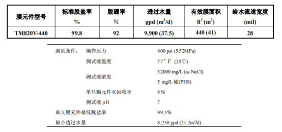 東麗TM820V-440 海水淡化膜元件特點(diǎn):