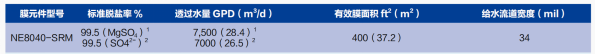 單支膜元件最低脫鹽率 99%(as SO42-)