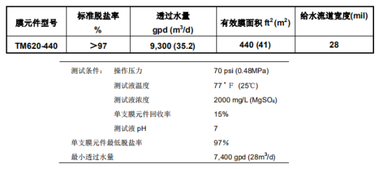 東麗TM820V-400海水淡化膜對總硬度要求