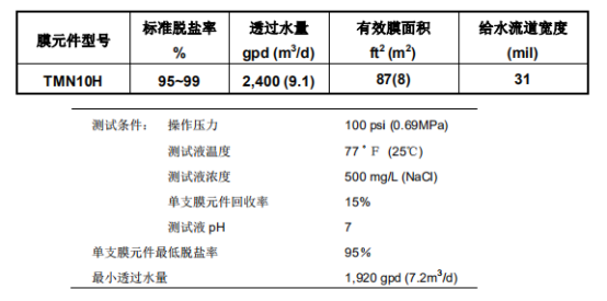 單個膜元件最大壓力損失····························································15psi(0.10MPa)