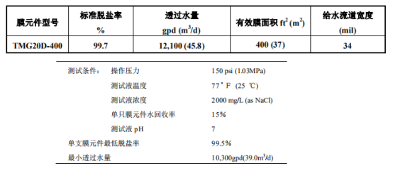 TMG20D-400具有最寬泛的清洗pH值范圍(pH1~13),可以快速有效的解決膜元件的污染問題;反滲透膜片能夠承受一定范圍內(nèi),由于操作失誤等原因造成的輕微余氯泄露事故,提高了系統(tǒng)的安全性。具有在較低的操作壓力下,即可達(dá)到較高的產(chǎn)水量,可以大大節(jié)省系統(tǒng)的運(yùn)行費(fèi)用。