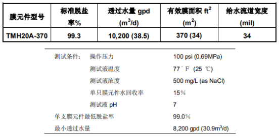 東麗TMH20A-370 極超低壓反滲透膜具有哪些特點(diǎn):