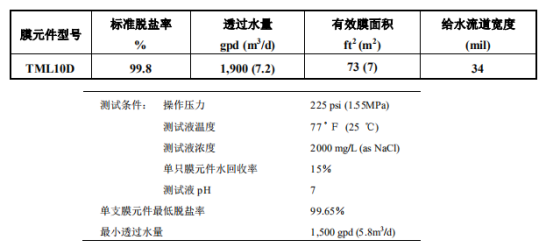 操作壓力225psi!東麗TML20D-370膜元件參數(shù)揭秘