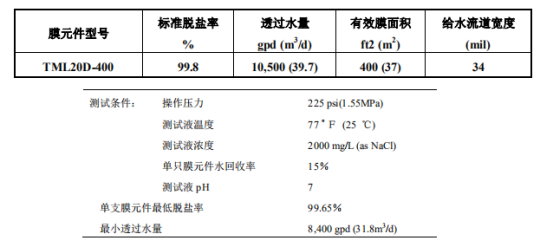 操作壓力225psi!東麗TML20D-370膜元件參數(shù)揭秘