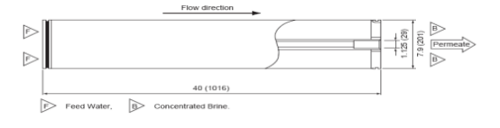 有效膜面積為400平方英尺,給水流道34mil。適合于含鹽量約10000ppm以下的給水,有較嚴(yán)格的預(yù)處理、但給水中仍含有有機(jī)物等污染物的領(lǐng)域。