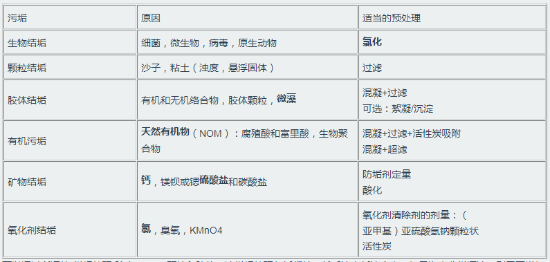 反滲透薄膜復合膜容易受到許多污染具體請看下表:
