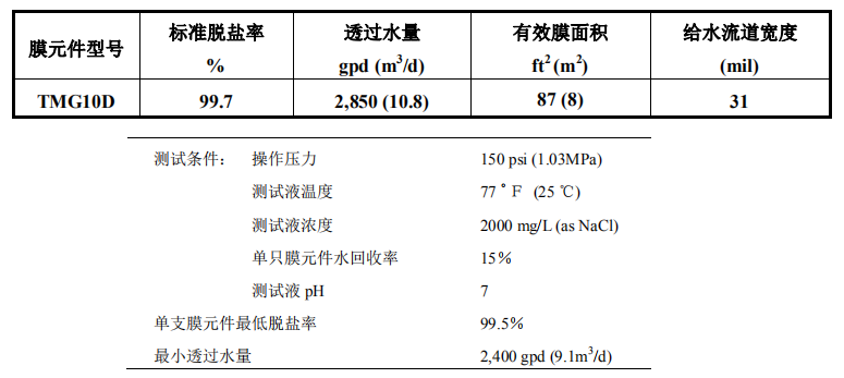 東麗TMG10D超低壓反滲透膜特點有哪些?