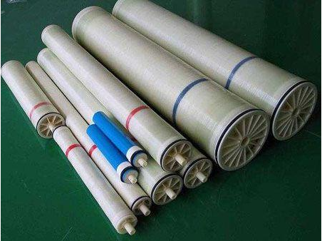 卷式膜元件 的形狀類似于一個長信封狀的膜口袋,開口的一邊會黏結(jié)在含有開孔的產(chǎn)品水的中心管道上。將多個膜口袋卷繞到同一個產(chǎn)品中心管上,使給水的水流從膜的外側(cè)流過,在給...